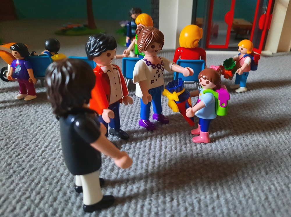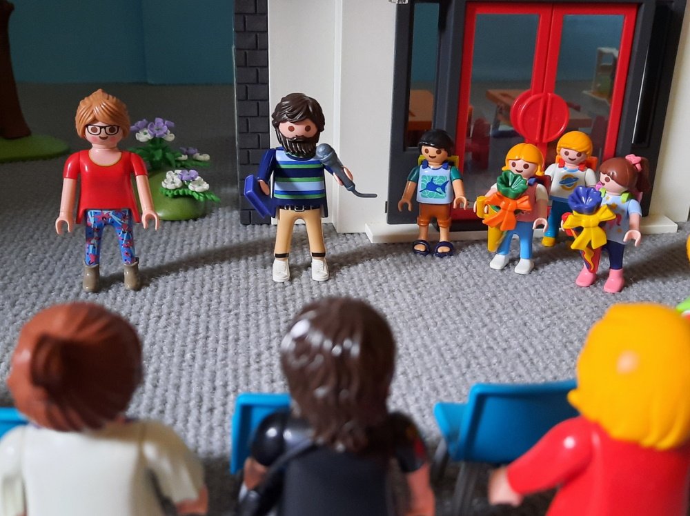 "Als nächstes möchte ich Ihnen und euch, liebe Kinder, die Klassenlehrerin vorstellen."