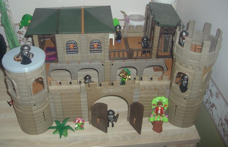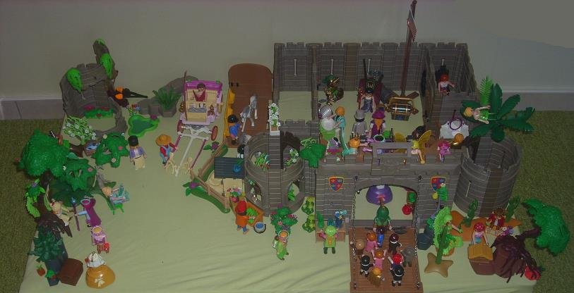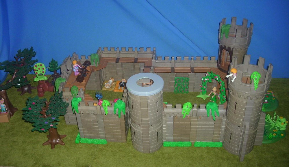 Es ist mal wieder so weit, daß meine Siebenjährige eine neue Burg samt Mini-Ruine aufgebaut und mit vielen Blumen und sonstigen Gewächsen verschönert hat. Außerdem mußte ich bestimmt ein Dutzend von ihren Figuren für sie zerlegen, damit sie diese neu zusammenstecken konnte.