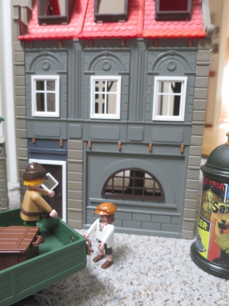 ich habe den Buchladen nochmal überarbeitet und die Spielwaren integriert. Leider ist der Laden innen noch zu dunkel. Und ich habe noch kein gut klebenes doppelseitiges Tesa gefunden, das :grinsen auf Plastik klebt. Nun ja geht nicht nur mir so, sondern auch oft bei den kleinen Playmobil-Orginalaufklebern für die Lebensmittel.