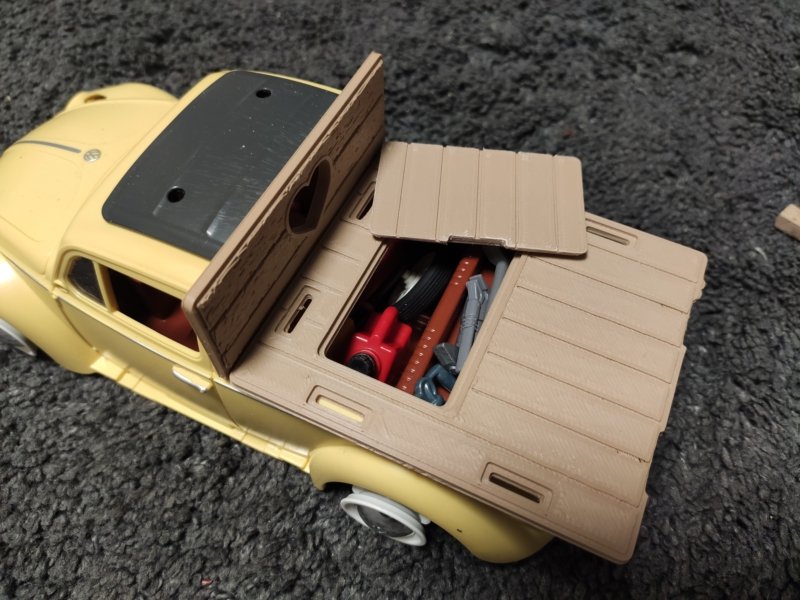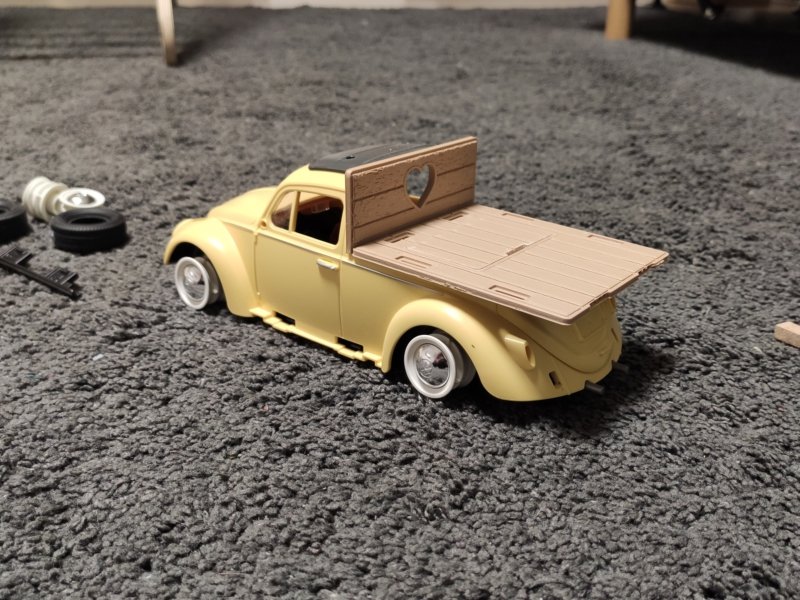 Für vorne hatte ich gerne noch eine Werkzeugbox in der Form eines Reservereifens o.ä., da fehlt mir noch was und das VW Zeichen gefällt mir nicht richtig. Mal sehen...