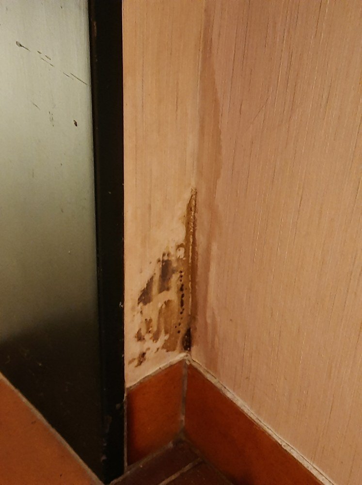 Die gesamte Wand (Innen- und Außenseite) des Zimmers im Keller ist patschenaß und setzt bereits Schimmel an.