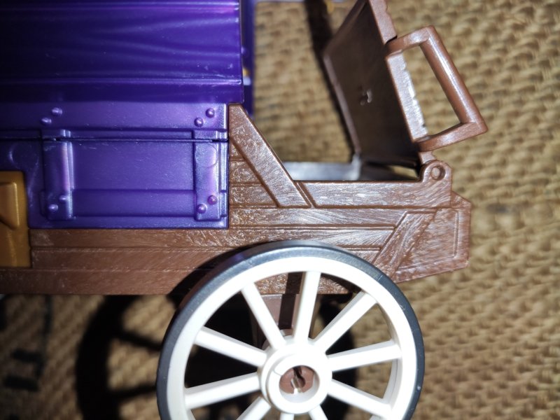 Um so größer war die Enttäuschung beim Auspacken, das große lilane Kutschenteil wirkt so billig wie ein Play-Doh Werkzeug oder wie Spielzeug aus einem Überraschungsei oder diesem richtig billigen Kunststoffzeug in grellen Farben an dem man im Rofu vorbei läuft und denk, so was würde ich nie kaufen!