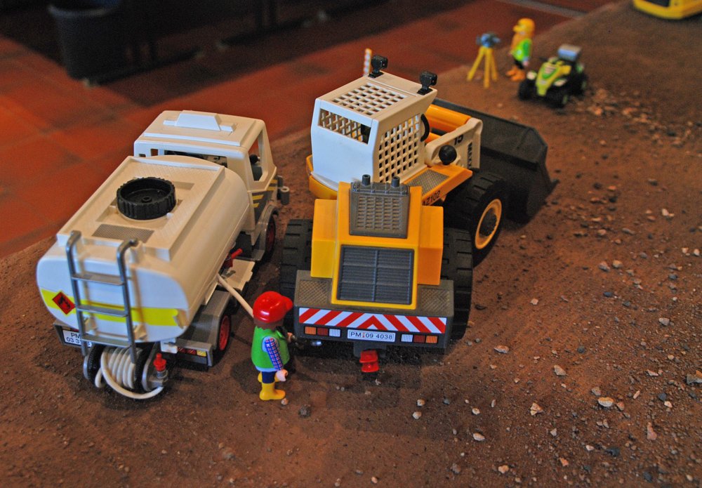 Womit fährt eigentlich der Battle-Tram (oben rechts im Bild) zwischen Viper Tower zum Central Tower bzw. zum Grayskull Tower? Natürlich mit Diesel!