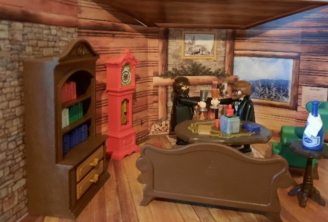 Zu Deiner Frage, wir hatten in NRW ja bis letzte Woche Sonntag noch Herbstferien und Max und ich haben an einem Tag, zwei Stunden genutzt um im "Playmobilzimmer", im Keller, die Aufnahmen zu machen. Bei den Bildern von Mai war er auch dabei. Also ich denke ein 1/3 der Bilder stammt von ihm.