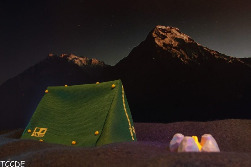 In der sternenklaren Nacht angekommen wird das Feuer wohl die Bären fernhalten.