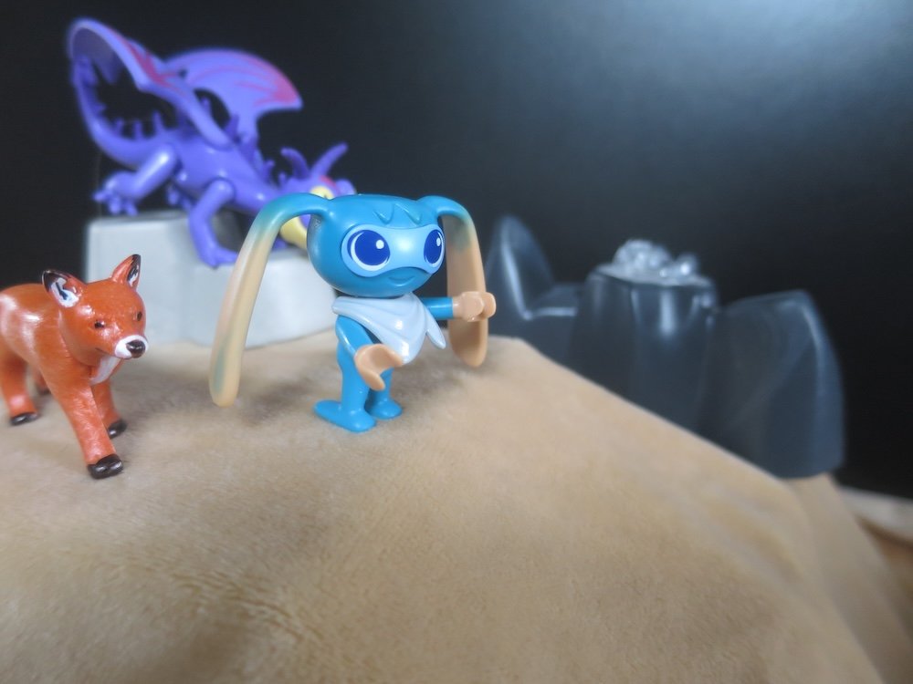 Sogar der Aufstieg in Tiergestalt haben Onkel Di und Mika mühelos geschafft. Oben angekommen schauen die Tiere sich suchend um. Der kleine Fuchs schnüffelt alles nochmals ab.