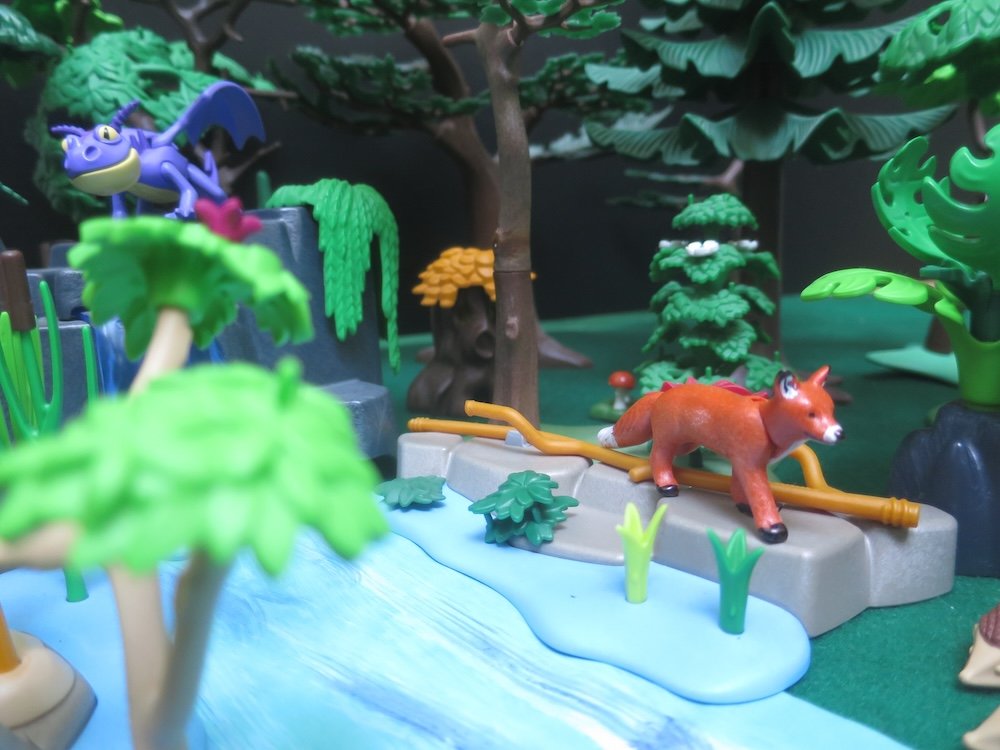 Sogar der Aufstieg in Tiergestalt haben Onkel Di und Mika mühelos geschafft. Oben angekommen schauen die Tiere sich suchend um. Der kleine Fuchs schnüffelt alles nochmals ab.