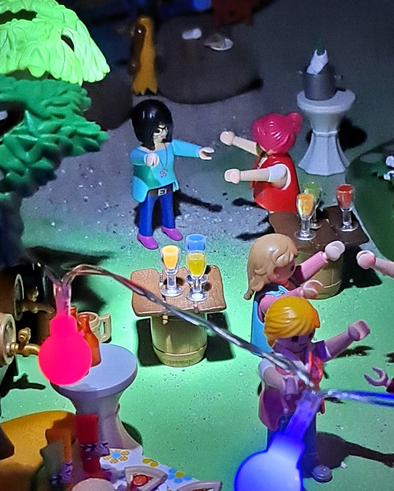 Wie doch die Zeit vergeht, es ist schon dunkel geworden. Ausgelassen tanzen wir zur Musik.