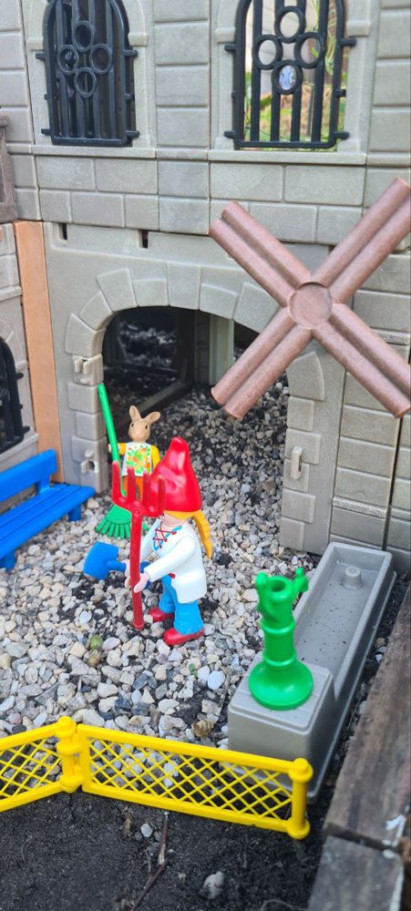 Ach, was gibt es doch für liebe Menschen! Eine Nachbarin bei mir im Schrebergarten hatte mitbekommen, dass ich mich für Playmobil interessiere - leider erst nachdem, sie ihre zwei alten Burgen günstig verkauft hatte (Schnappatmung... ) Jetzt am 01.05. klingelt mein Handy und besagte Nachbarin ist dran: sie sei gerade mit ihrer Familie auf dem Flohmarkt und da seien Tüten voll mit Burgen/Mittelalter-Hausteilen - sie habe mir auch gerade Bilder geschickt - ob ich die haben möchte? Sie würde sie kaufen und mir dann auch nachher vorbei bringen.