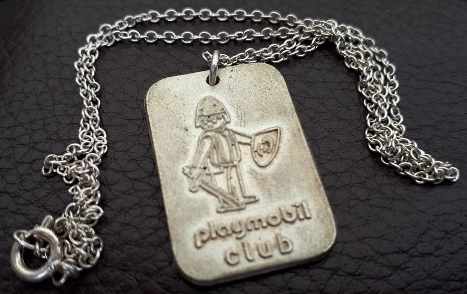 Die bereits erwähnte Kette playmobil Club aus den 70ern, einmal mit Kette und einmal nur der Anhänger