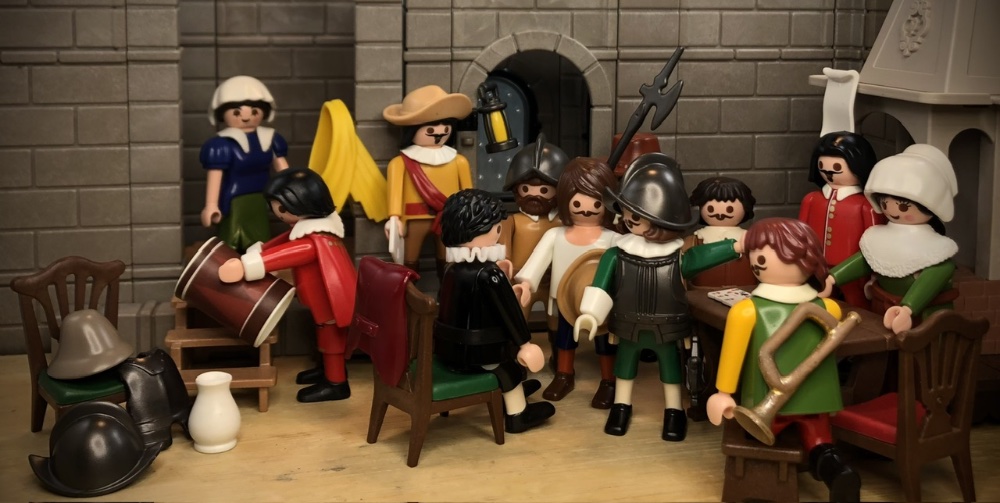 Interessant in diesem Zusammenhang finde ich die Tatsache, das Geobra den Überwurf der Musketiere fast genauso gestaltet hat, wie es gemalt wurde :bang1