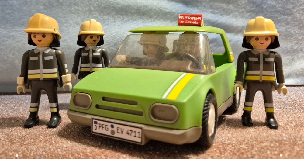 Bei der Gruppen- und später Zugführerausbildung gab es die üblichen Dioramen und Autos in HO - da wäre Playmobil evtl. ein bißchen zu groß geworden. :rockcool