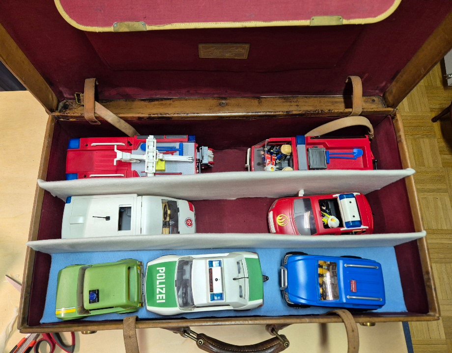 Platz für FW, Pol, RD, ein paar Figuren... Unter der blauen Platte vorne ist nochmal eine Ebene für PKW (NEF, KdoW RD... Da geht noch was). Der nächste Kurs kann kommen :smile