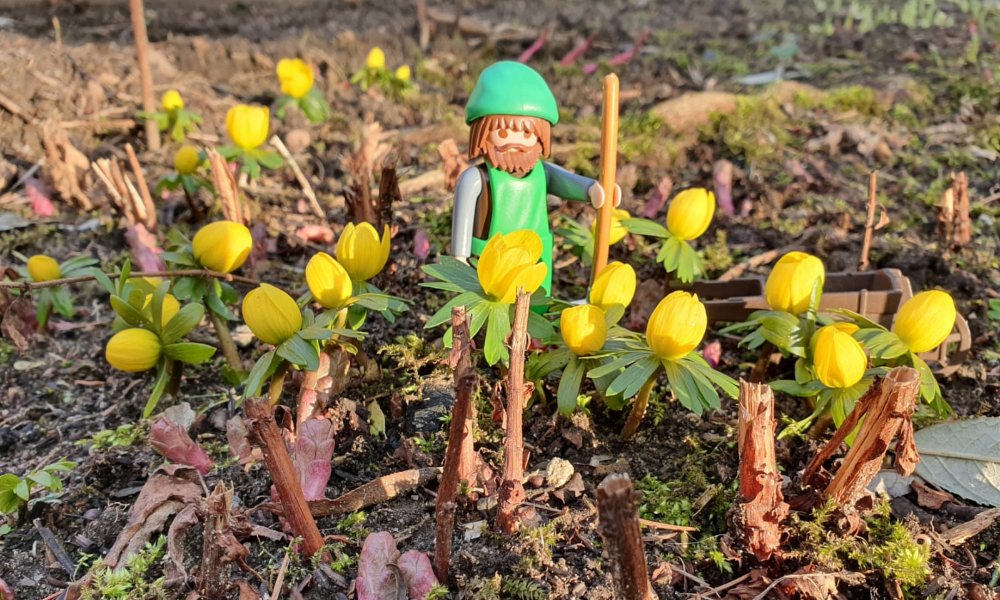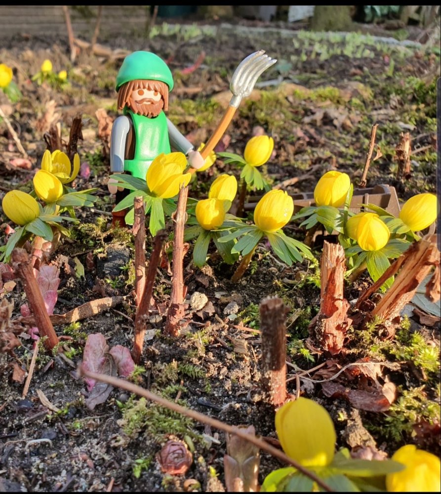 Die Sonne setzte gestern die Winterlinge so schön in Szene, dass ich einen Gärtner stecken musste, damit ich den Augenblick festhalten konnte.