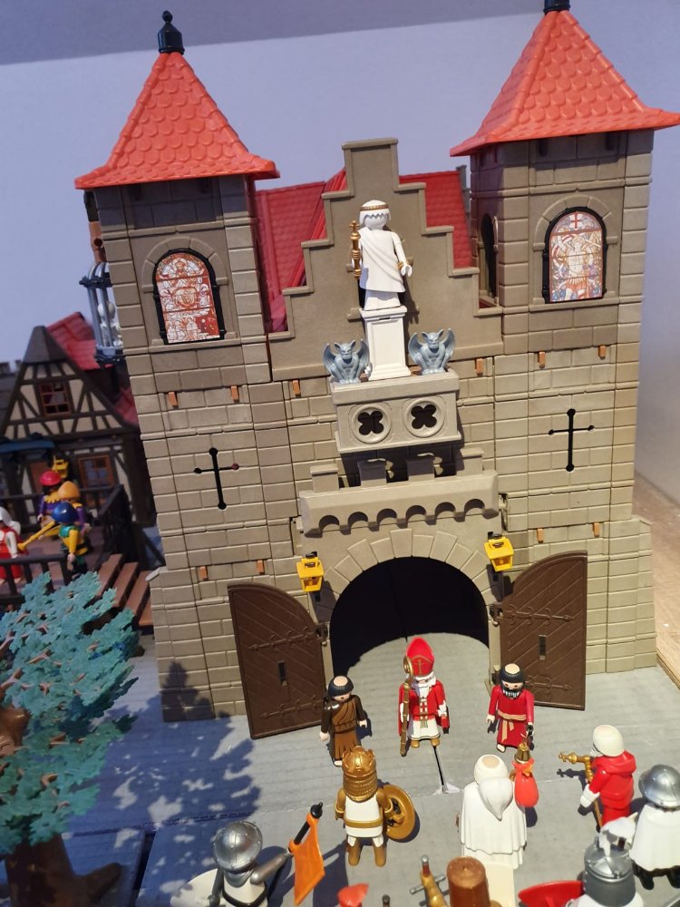 Ich würde auch, egal ob historisch korrekt oder nicht, immer so bauen, wie es mir optisch am besten gefällt. Und ich finde, die gotische Fensterrosette wirkt gut zu den romanischen Rundbogenfenstern. Dazu eine Frage: Die Rosette passt farblich echt super zu den Origninal-Playmoteilen. Nachgepinselt oder gibt es die in diesem passenden Farbton?
