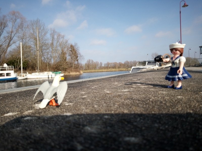 Meine Begleitung hat sich auf die Schnelle im Freien mal eben maritim umgezogen.