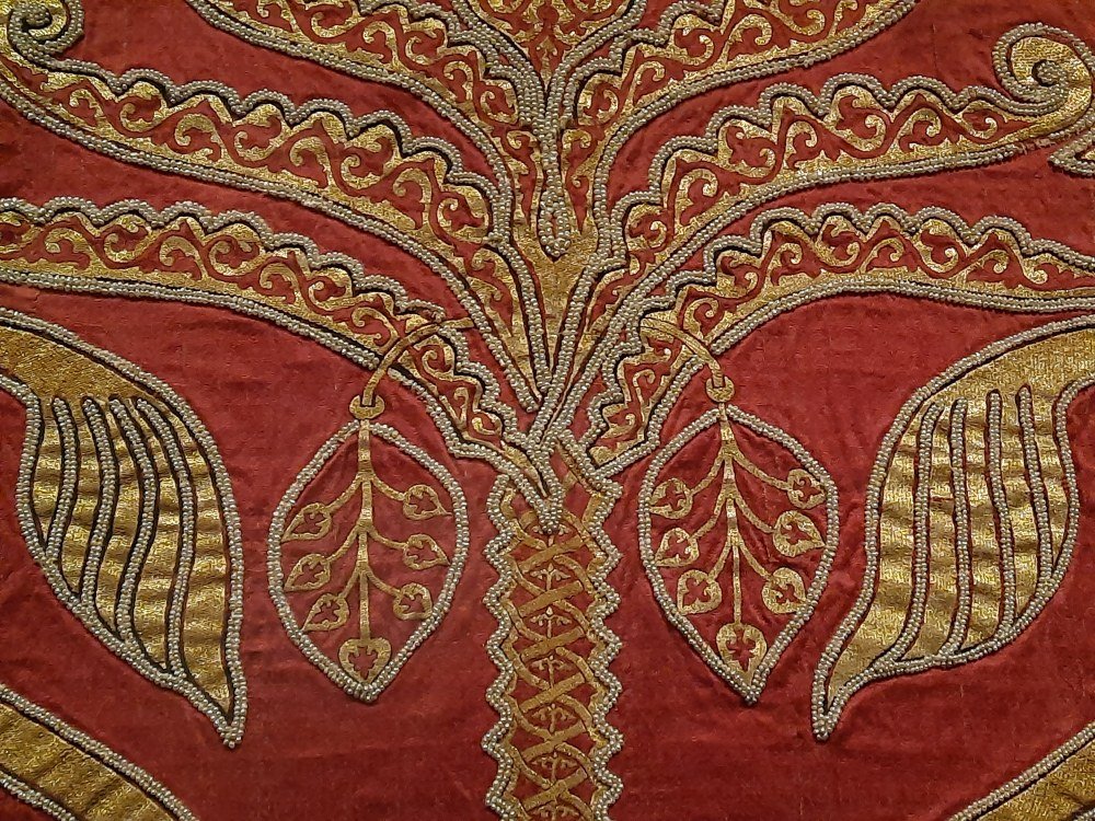 Textilien von Herrschern, wertvolle Paramente, reich mit Perlen besticke Kleidung
