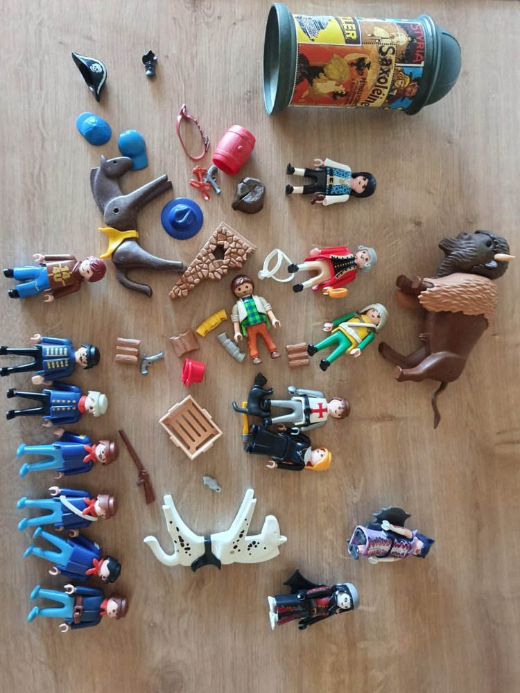 - Alters- und Lagerungsbedingte Verstaubung, sowie "spielende" Verwendung von Aufklebern (Playmobil).