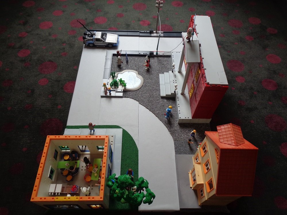Gesamtansicht, mit Rathaus, Lorraines Elternhaus und Lous Cafè.