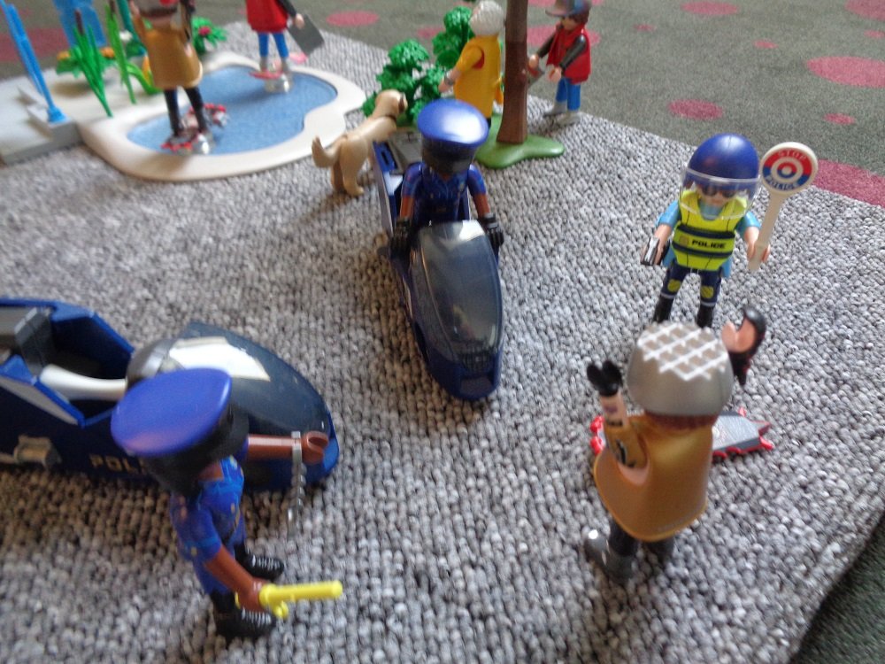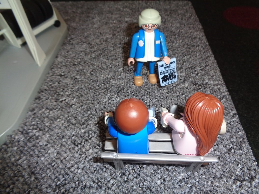 Biffs Enkel Griff wird verhaftet. Er ist ins Rathaus, bei der Verfolgung von Mc Fly jr. (Marty ist es), ins Rathaus gekracht. Dadurch wird die Straftat der Beiden zusammen verhindert. Aus Platzgründen ist das Rathaus unsichtbar.Szene aus Film 2, im Jahr 2015