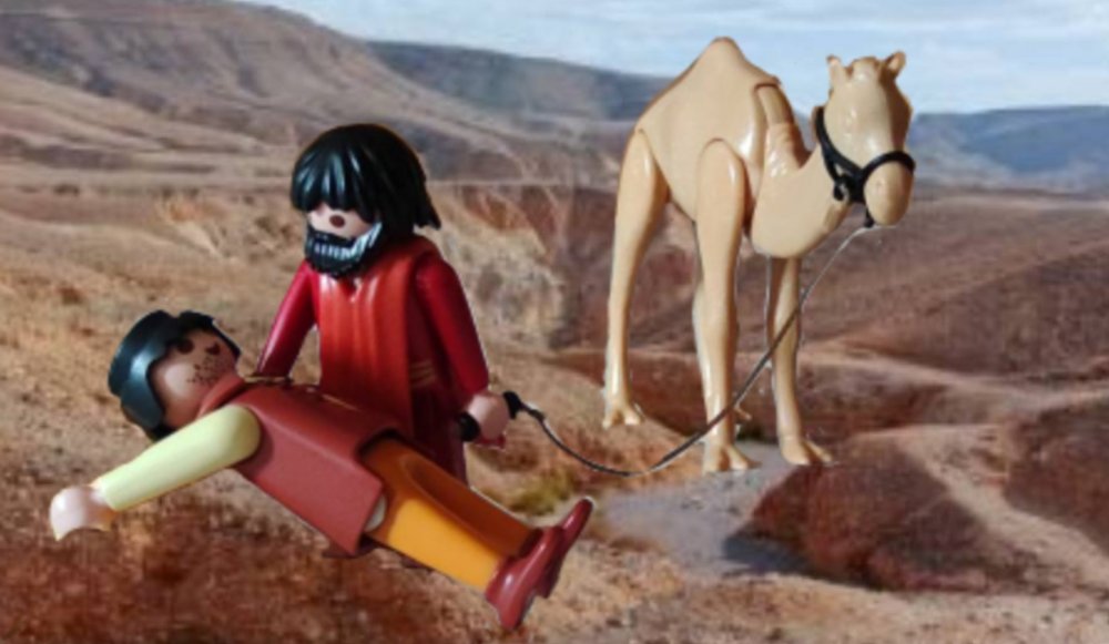 Dann kam ein Mann aus Samarien, der auf der Reise war. Als er ihn sah, hatte er Mitleid,