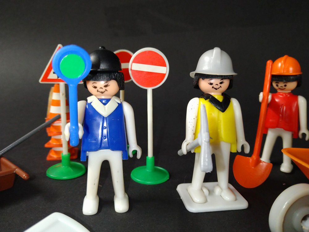 Diese Verkehrsschilder kommen mir sehr bekannt vor. Ich meine, die hatte ich früher auch mal. Aber ich hätte spontan gesagt, daß die zu einem Plastikjeep in Playmogröße, der mit Süßkram gefüllt war, gehört haben müßten. Da waren aber ziemlich sicher keine Figuren dabei.