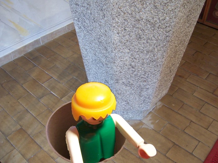 Der Hüne war zum Taufstein gegangen. „Der Stein...“, murmelte er, „und der Taufstein...“. Er untersuchte den Taufstein, der ganz und gar aus Granit geschlagen war. Schließlich stemmte er sich mit ganzer Kraft dagegen. Und langsam, ganz langsam schien sich der schwere Stein zu bewegen.