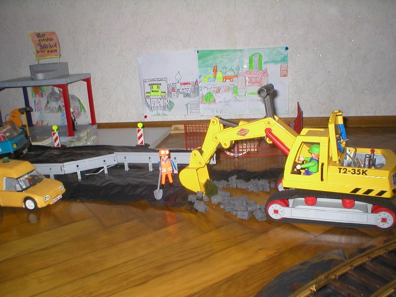 Hier Die gleisbaustelle übertage In Playmotown -Mitte , parallel verlaufen Die Arbeiten Am Hans Beck platz an der Ubahn station der arbeitsverlauf sieht so aus Hier wird mit dem Bagger die Alten beläge Um und Auch Die Schienen müssen erneuer werden ,Am anderen ende Der schienen abschnitt Wurden die Gleisse schon Durch neue Ersetz , Und Verschweißt, PS:Die Bilder Der U_bahn baustelle Folgen Nach