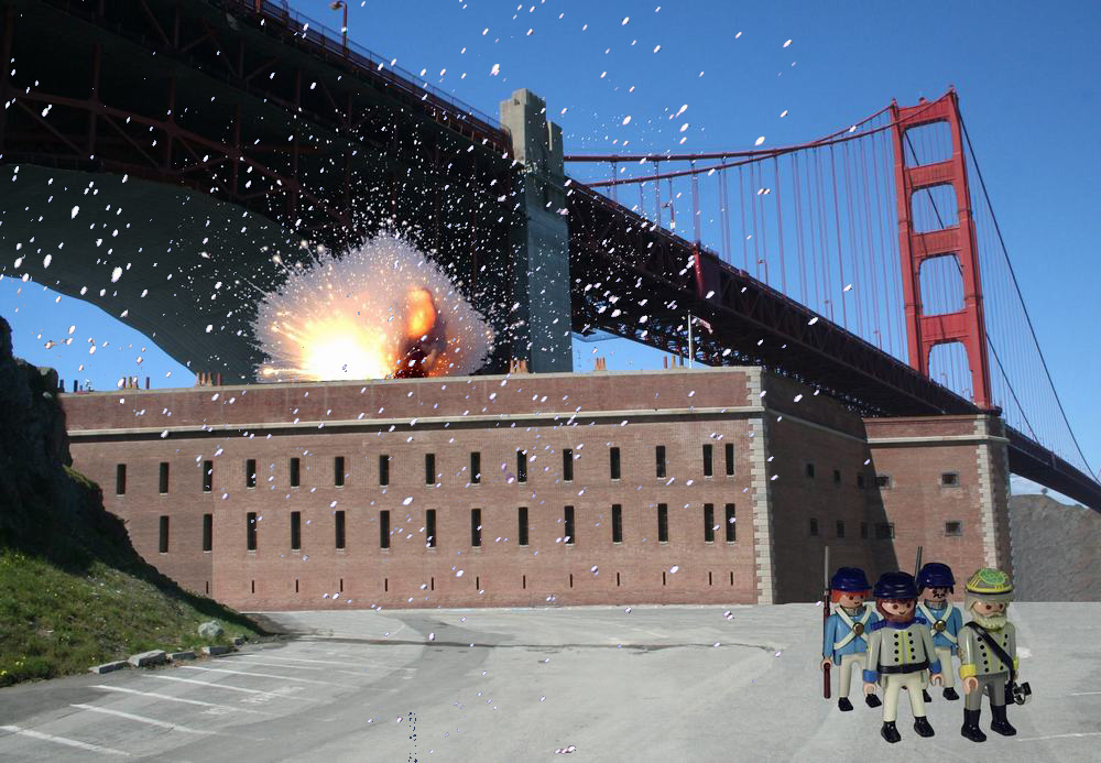 Die Maschinerie war allerdings nach wie vor erhalten und intakt. Die Steuerzentrale befand sich hier in Fort Point. Die Liga war auf das alte Projekt aufmerksam geworden und hatte den Verwalter des Forts bestochen, damit er regelmäßig die Tore schloß, wenn Regattateilnehmer versuchten, die Meerenge Richtung Pazifik zu passieren. Der Wasserspiegel stieg dann so stark an, daß die Schiffe mit der Brücke kollidierten.