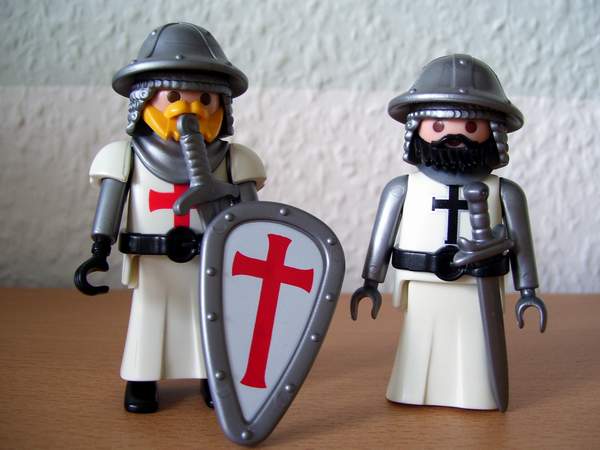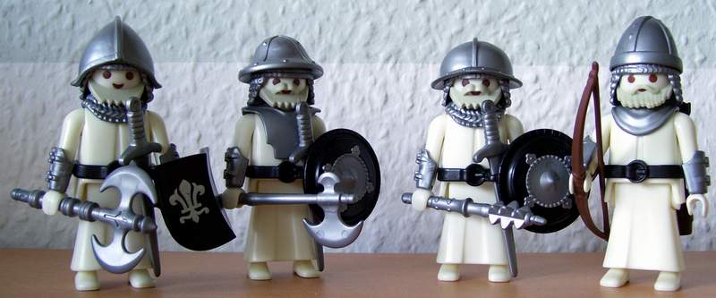 Ich würde den rechten Ritter auf dem letzten Bild einfach schwarz einfärben, dann geht das perfekt für eine Playmo-Variante von "Die Ritter der Kokosnuss".