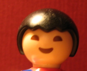 Bild 2 zeigt den Kopf meines allerersten PLAYMOBIL-Bauarbeiters, den ich 1974 im September zu meinem 5. Geburtstag bekam, Bild 1 einen etwas besser erhaltenen Kopf aus der gleichen Zeit. Die Gesichter sind noch nicht geprägt, sondern nur aufgedruckt.