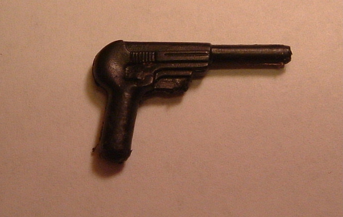 Exakt. Pistole von Walther, Modell P 38 / P 1 aus den Play-Big Bundeswehr-Sets. Leider ist das Korn am Ende des Laufs abgebrochen worden.