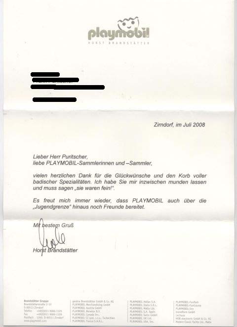 Heute habe ich eine Dankeskarte und ein Anschreiben von Herrn Brandstätter erhalten.