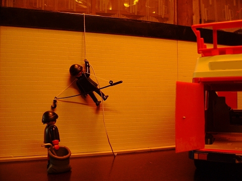 gut gelaunt und nichts ahnend klettern die Beiden vom Dach runter...
