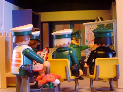 Sofort kommen die Beamten von allen Seiten angestürmt.