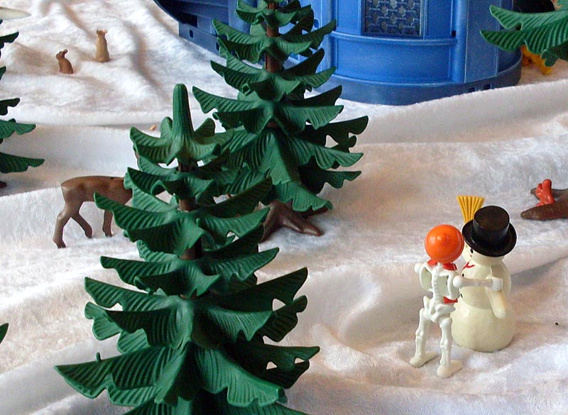 "...und jetzt noch zwei kleine spitze Kiesel für die Zähne, dann ist der Schnee-Vampir fertig..."