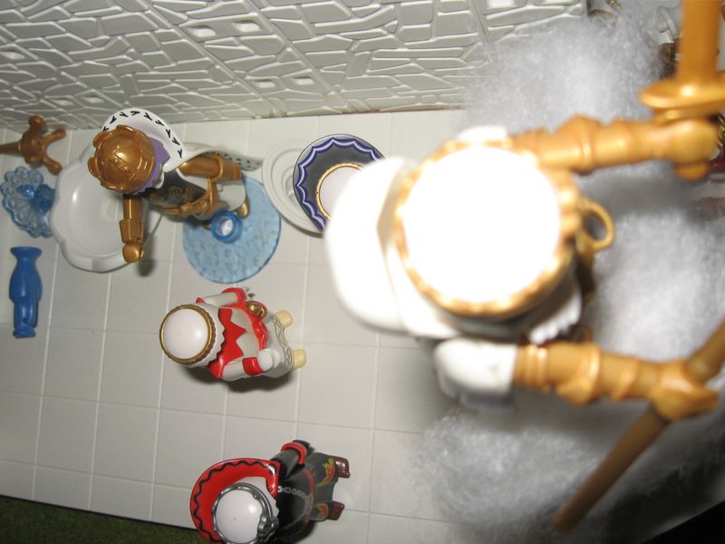 Die drei fingen sofort an,mich mit magischen Geschossen, Blitzen, Donner, Flüchen und Ähnlichem zu belegen, doch ich war vorbereitet und hatte meinen Dreizack in Position gebracht, an dem die meisten Zauber wie von einem Schutzschild abprallten. Ich versuchte mit göttlicher Lichtmagie zu kontern, doch waren die Drei zu stark und ich merkte, wie meine Kräfte schwanden, als plötzlich der Nöckbrunnen in lautem Getöse zersprang und die Konzentration der drei Elfenmagier einen kurzen Augenblick nachließ, denn inmitten der verbliebenen Pfütze erschien...