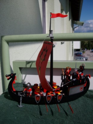 So, nach tagelanger Arbeit, hab ich heute das Drachenschiff fertig gestellt.