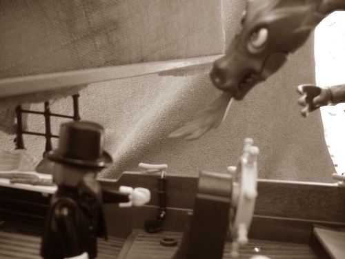 Haubri: "Äääh - ja, bis auf den Hut. Der hat ein bißchen was abgekriegt..."