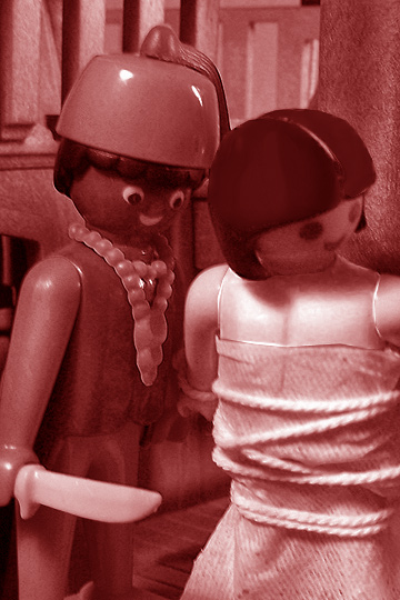 Der Captain eilt der jungen Frau zur Hilfe und befreit sie.