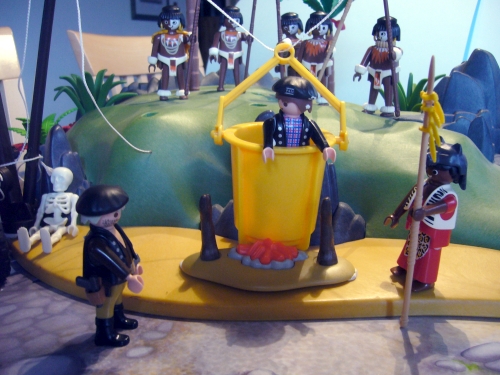 (Und du? Du bist mit Sicherheit der komische Insel-Häuptling, der meinen Buben fressen lassen will?