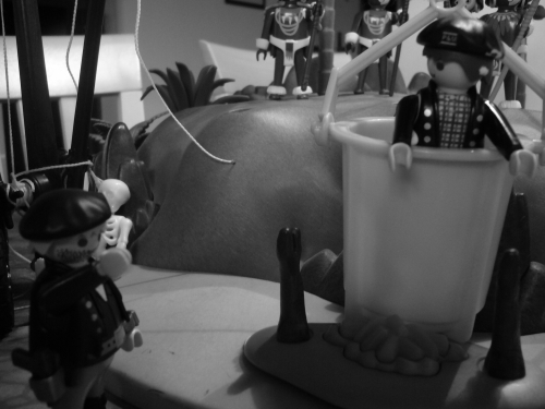 (Sag mal, Blacky, habt ihr etwa den da hinten auch schon so abgenagt, wie ihr es mit mir vorhabt?)