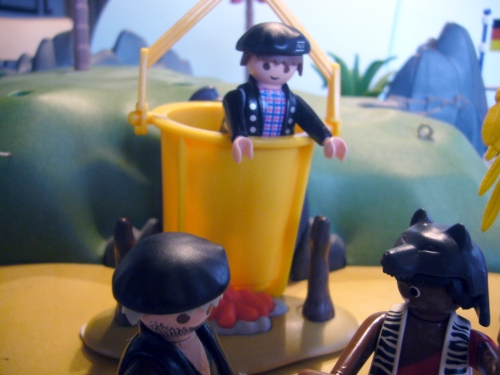 (Mensch, jetzt wird es aber richtig heiß hier drinnen. Heh, Häuptling, lass mich raus!)