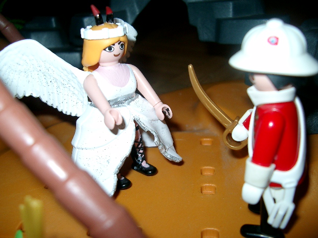 „Du solltest eigentlich wissen, dass man sich nicht mit einer Dame duelliert. Schlimm genug, wenn Du eine Waffe gegen sie erhebst, da geschieht Dir die Niederlage nur Recht. Kommen Sie, liebes Bengerl, gehen wir. Ich habe genug gesehen.“