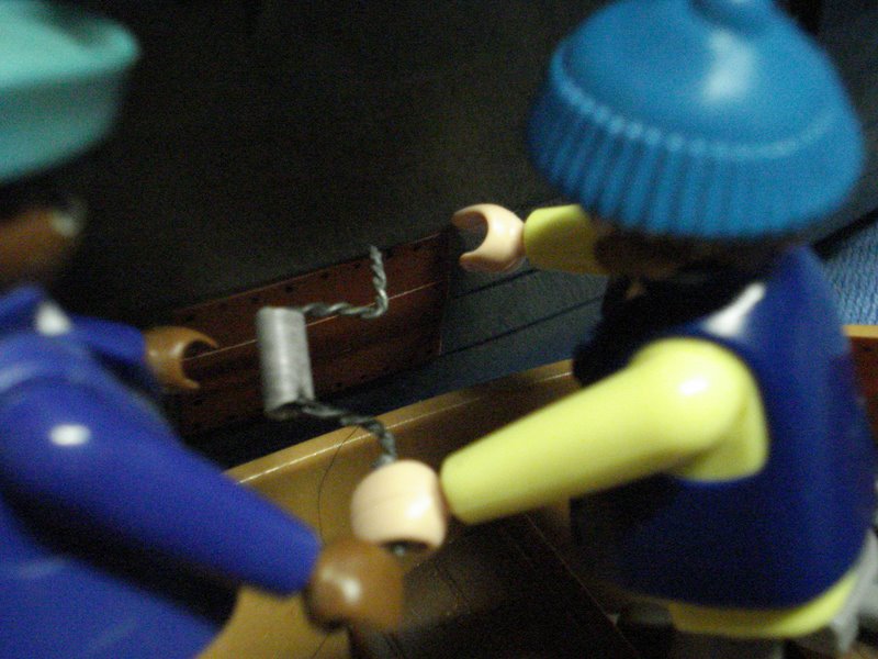 Kapitän: "Mr. Perkins und Sam ihr nehmt das Beiboot und flickt das Leck mit einem Kupeferblech und John schlägt von innen die Nietköpfe" Mr Perkins: "Ay, Käpten"