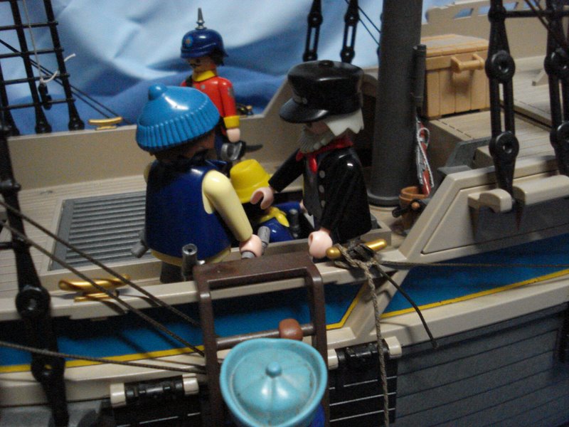 Käpten: "Ihr habt es gehört Männer, Beilen Wir uns, setzt die Segel und Anker auf. Mr. Turner, Kurs Nord-West"