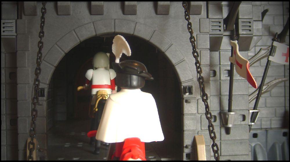 Die Zugbrücke, die das Ende des Steges mit der Festung verband, kam wie durch Zauberhand herab. Beim Näherkommen sah Harim jedoch, dass sehr wohl Menschen die schweren Ketten der Brücke bedienten. Sie trugen das Kreuz der Handelsgilde auf ihrer Brust.
