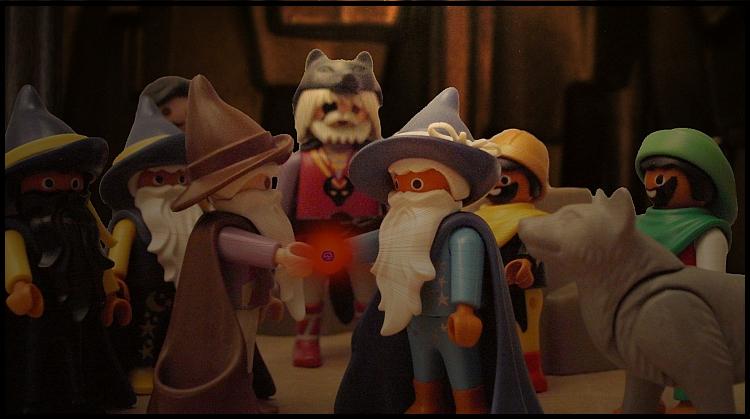 Deman Ya nahm das Medaillon behutsam entgegen, murmelte ein paar Worte, dann drückte er auf das Medaillon, und drei blutrote Kristalle fielen aus dem linken Auge in seine Hand. Als die Kristalle Deman Yas Hand berührten, begannen sie zu leuchten. Je einen Kristall reichte er vorsichtig den Ratsmitgliedern, während er das Medaillon an seinen Träger zurückgab. Nun trat ein Wolf an die Seite eines jeden der drei Ratsmitglieder.