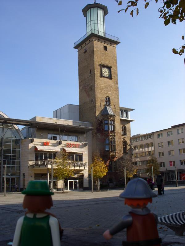 Rechts der alte Rathausturm mit dem darunter liegenden Rathauskeller.
