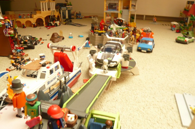 Für mich gabs die komplette Steinzeitwelt und die beiden neuen Super-Sets Abenteuerspielplatz und Pinguinbecken. Fotos gibts leider keine, ist alles bereits geöffnet, aufgebaut, ausgiebig begutachtet und mangels Platz im Wohnzimmer (und damit keiner drauflatscht) sicher beim übrigen Playmo verstaut.